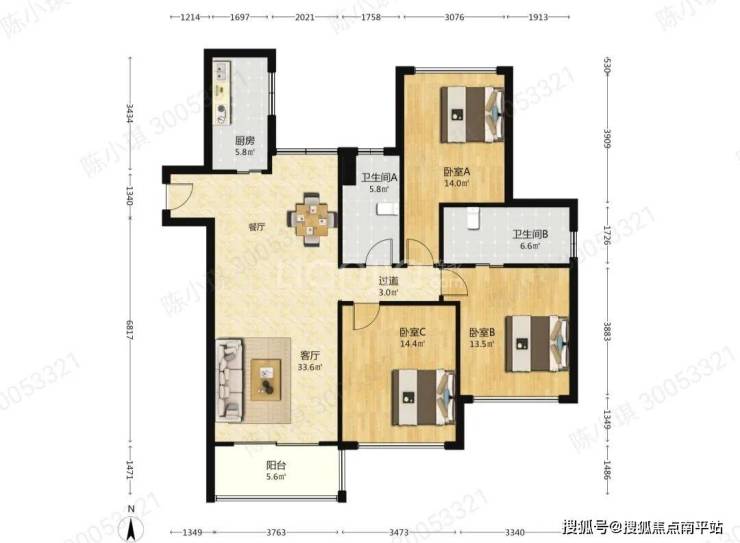 《客餐厅33.6㎡》《阳台5.6㎡》