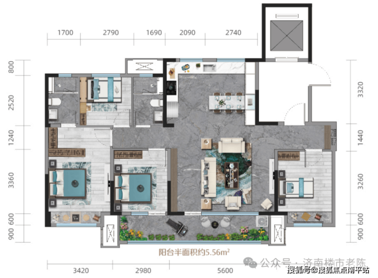 建面约169㎡ 四室两厅三卫,一梯一户,近9米宽双联阳台,双套房设计,致敬层峰人物!