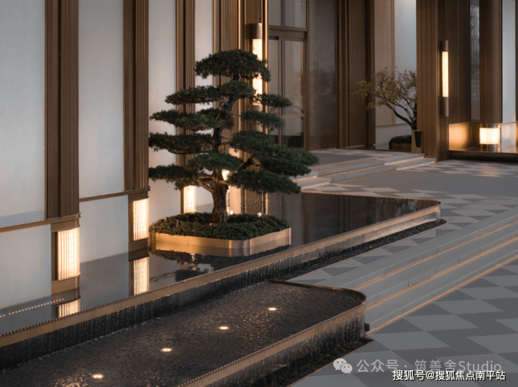 以“山水人文·礼序栖居”为核心构想,构筑了一个立体的景观框架,巧妙地将金陵文化的金鳞、云锦、凤栖、龙鳞、东山金箔等经典元素与建筑空间相融,营造出“宜居、宜游、宜赏”的沉浸式生活空间。景观主题为“雅奢东方”,尽显尊贵气质,巧妙融合定制化的传统文化与现代审美,打造出独特的东方美学居住体验。在景观设计上,以《金陵四季图》为灵感源泉,提炼出七大自然元素,并结合东山文化名流的生活意趣,将这些元素巧妙融入具体设计中,为当代精英阶层打造了一个充满文化底蕴的生活意境。