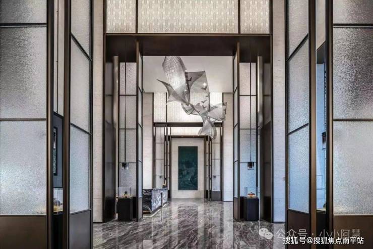 进入臻境,就被迎宾水景的用材打造吸引眼球,采用全球知名奢石材质;更是源自世界顶奢瑰丽酒店空间提取灵感,境造约9米高酒店式大堂前厅;
