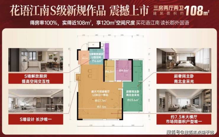 项目二期主推108-128-132㎡新规户型,综合得房率高达 100-110%。