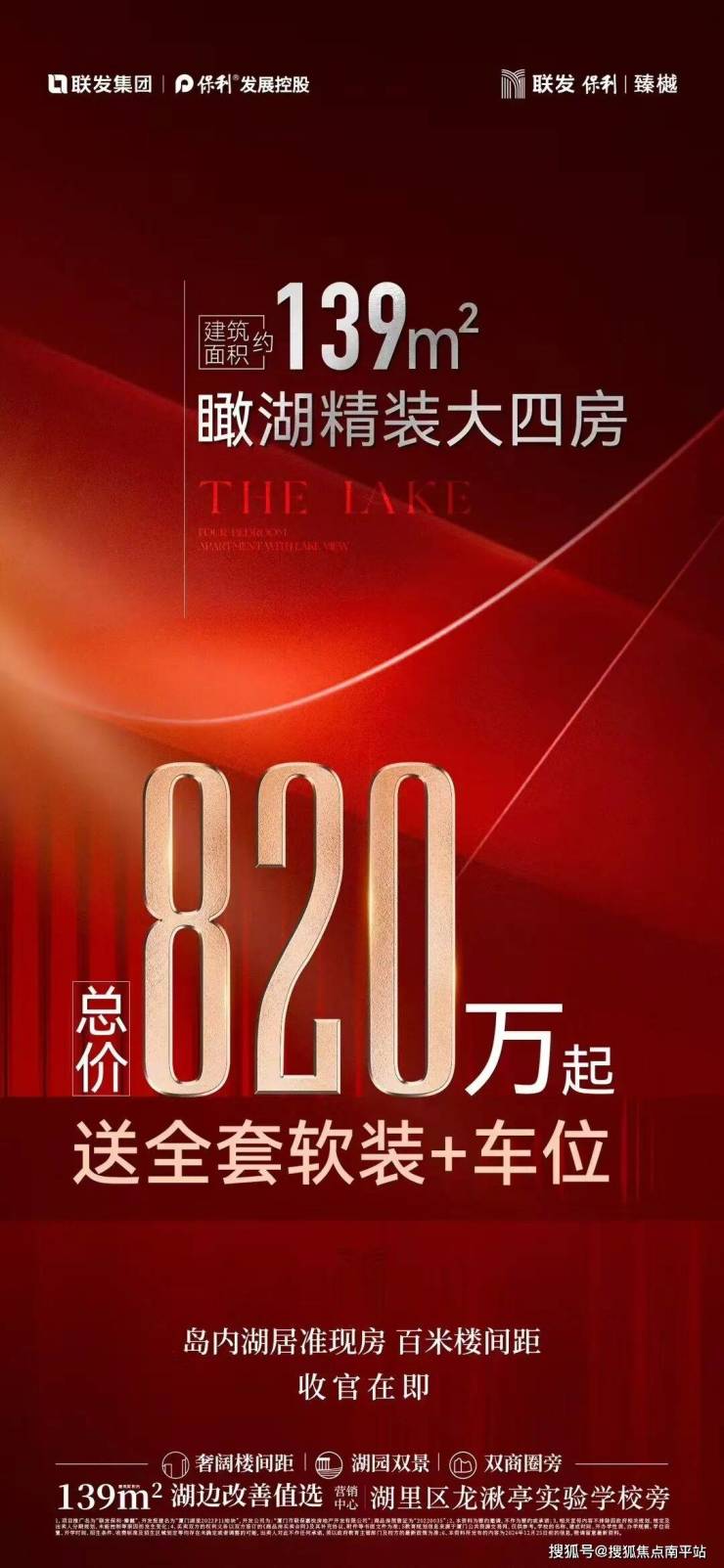 联发保利·臻樾部分楼栋能够瞰景不可复制的湖景资源,面积规划106-121-139㎡3-4房