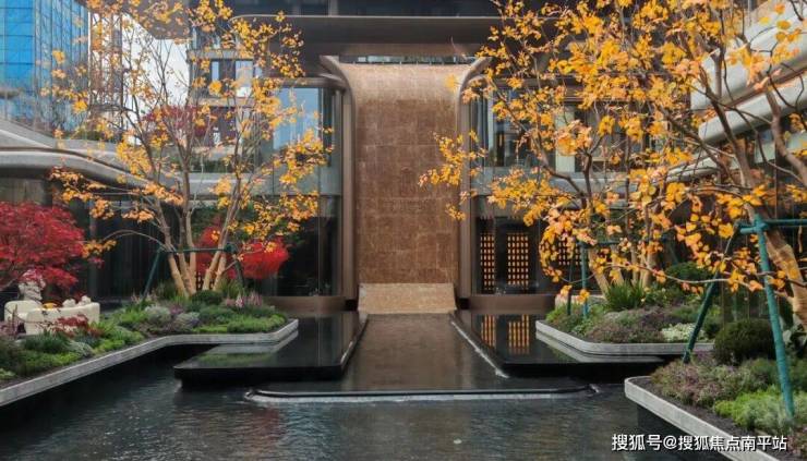 约1000㎡下沉水院,约11.8米高差的跌水瀑布复刻湘江奔涌之姿,为当代精英构筑一方自然秘境,让征服世界的脚步,于此寻得松弛与安宁。