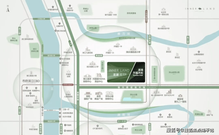 主二环城央核心地段,福元路超级中轴,一步市府滨江&五一商圈;长沙唯一“一江两河”环绕的超级宜居区,极萃城市顶阶资源;是繁华中心与高端人居的聚首。