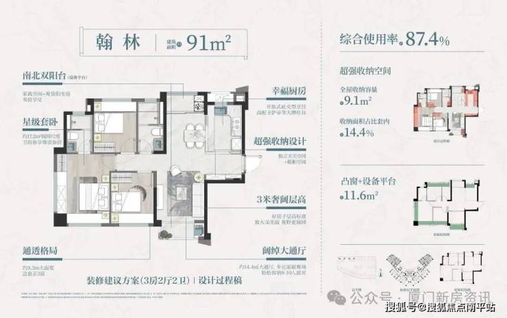 91㎡户型:岛外双阳台孤品,自带王炸稀缺光环