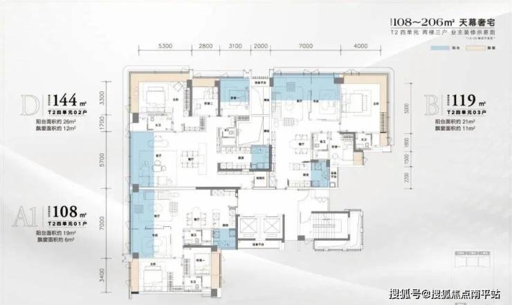 【北塔T1】约195-206㎡无界山景四房 城央奢享家