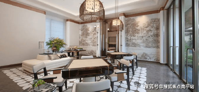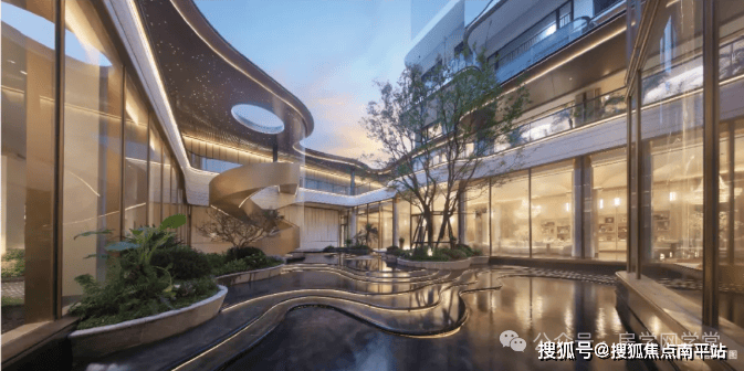 约1500㎡下沉式美学会所,臻选蓝水晶、威尼斯黑等纯天然大理石,阿玛尼墙布,古堡灰、海洋蓝、蓝水晶等奢感石材,打造风雅会客厅/旋转浮梯/落瀑庭院/新氧健身/宁心瑜伽等生活场域,漫享品质生活。