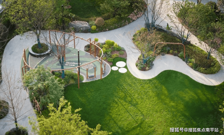 项目北靠洪山,南临南湖,地势北高南低,占据大武昌中心地利。项目结合地势高差,在约7000㎡中央公园打造上,以“叠山”、“理水”、“茂林”、“修花”四大维度,诠释观山听泉的园林意境。