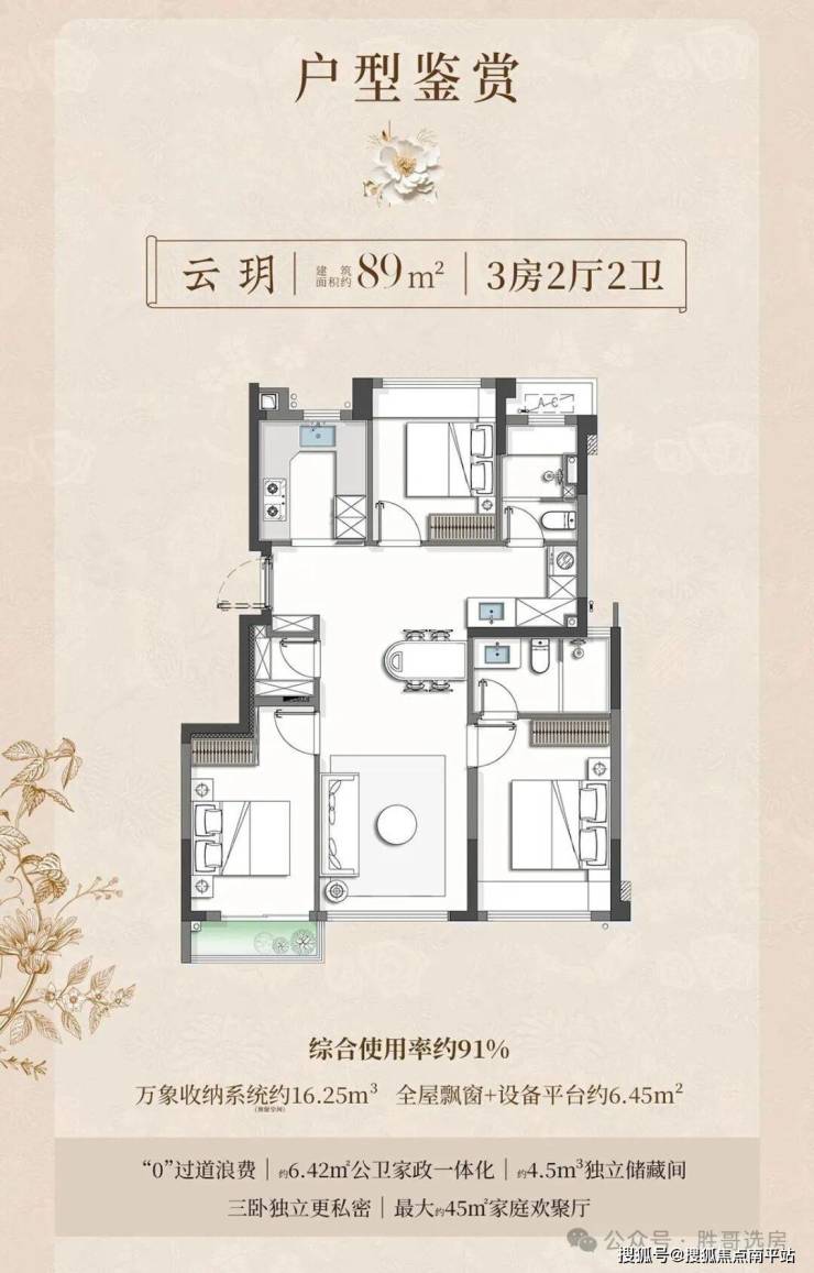 户型方面,就聊聊主力户型89平3房2卫和102平3+1房2卫。其实也没什么好聊的,无非是鸡蛋里挑挑骨头,因为岛内没有竞品,岛内其他项目89平高层也很少,大都没办法南北通透,更何况璞云是洋房+板式洋房+一梯两户的板式洋房。