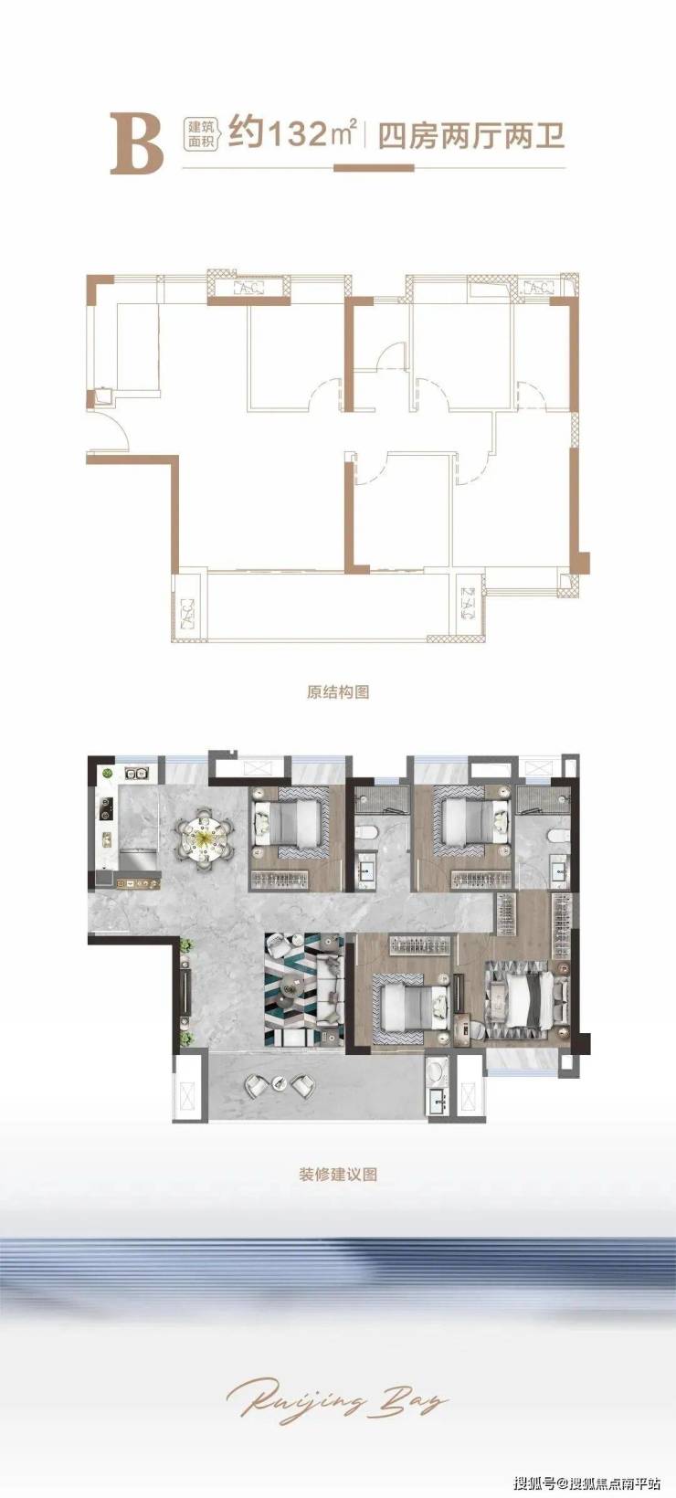 项目主力产品为132平四房两厅两卫,规划136套,占比达49%;其次为89平三房两厅两卫,规划92套,占比33%;辅以48套143平四房两厅两卫,占比17%。