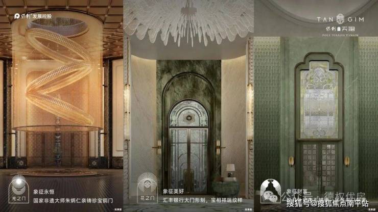 【大师四艺】:聚合朱炳仁铜门、非遗珐琅彩、珍木园艺、奢石镶嵌四大工艺,非遗大师将文化雕琢入微,让匠心沉淀于每一处细节。
