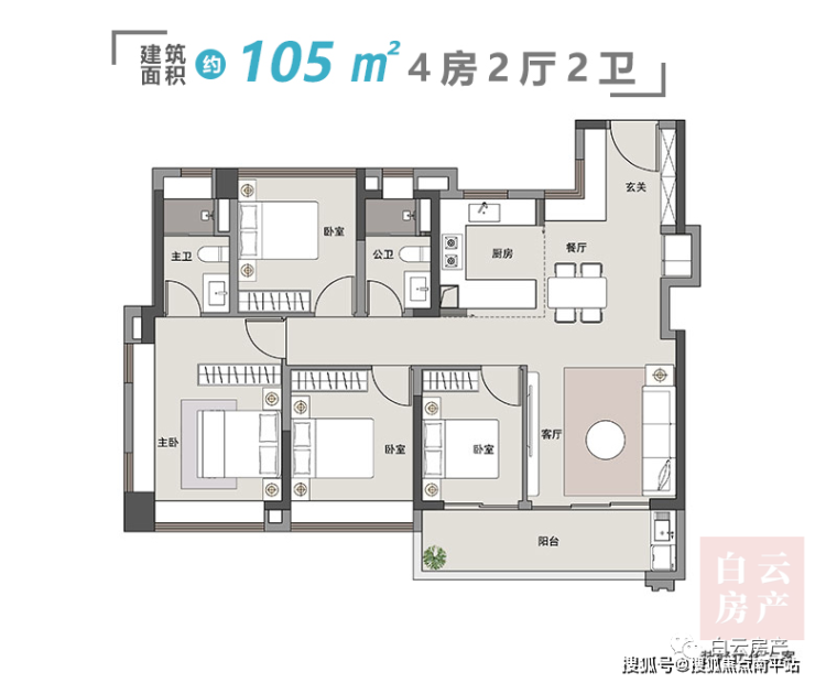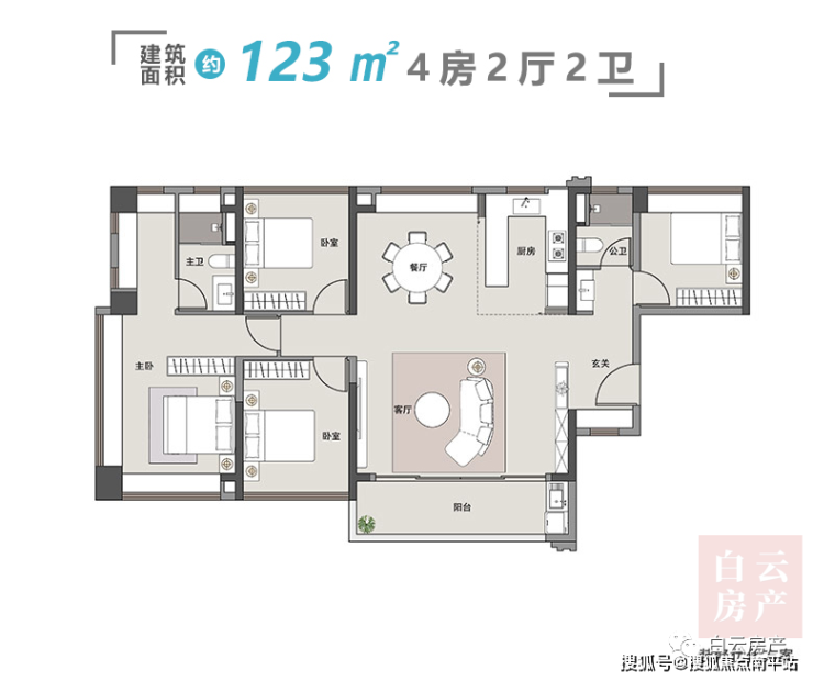 |建面约123平4房户型图