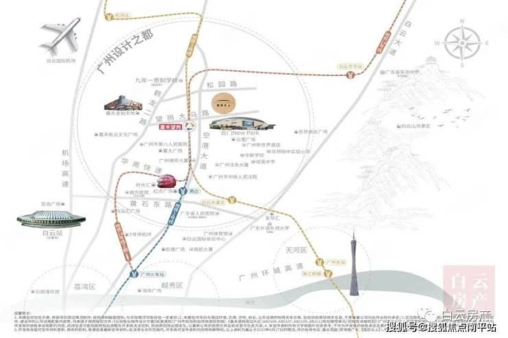 门口的空港大道作为白云重要的南北中轴线,全长约18.65公里,从南到北串联起白云新城总部集聚区、广州设计之都、临空产业组成白云的新中轴