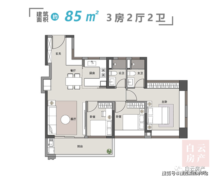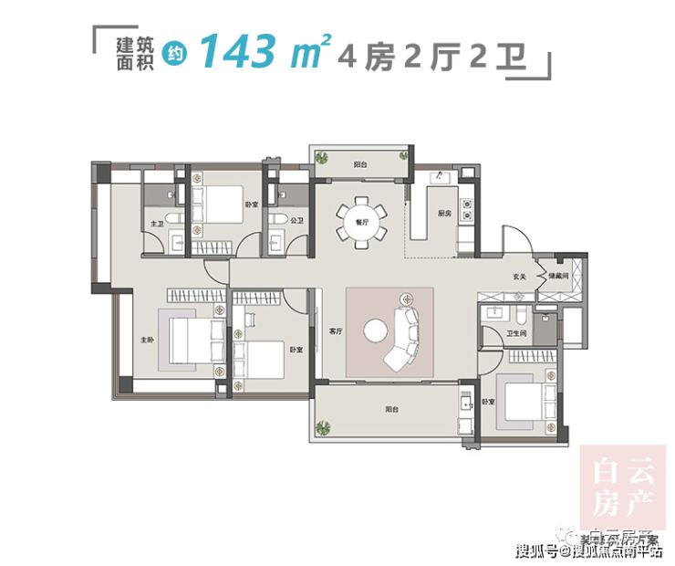 主推户型:85m²、105m²、123m²、143m²