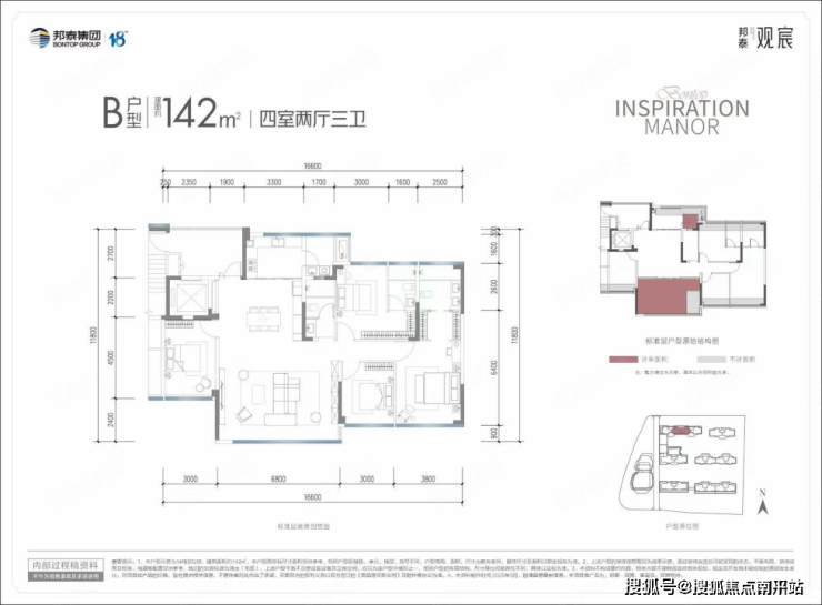 超得房率魔法:综合实际使用率约117%-121%(含电梯厅),142㎡实得约165㎡媲美传统190㎡户型;