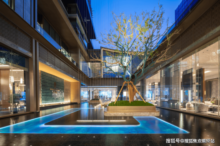 外立面设计:飞檐造型搭配 “曲面屏” 公建化设计,铝板 + 玻璃幕墙,近乎 0漆墙面,用现代材料展现东方美学意境。