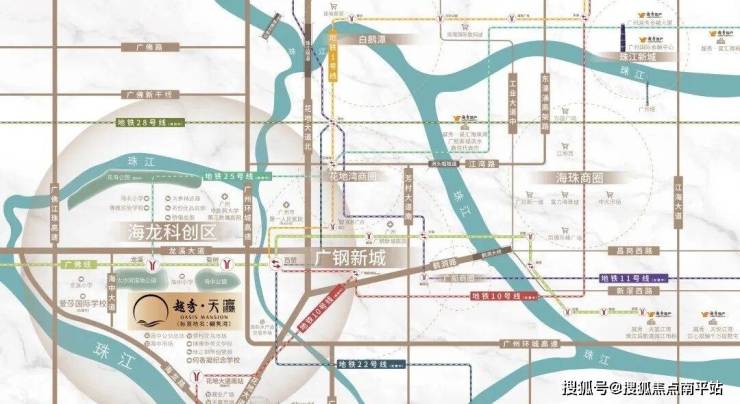 自驾:越秀·天瀛前面海龙路接驳各条高速,东接广州环城高速,西接广佛江珠高速,南接广台高速,距离荔湾核心聚龙湾约9公里,距离琶洲20公里,距离珠江新城20公里。