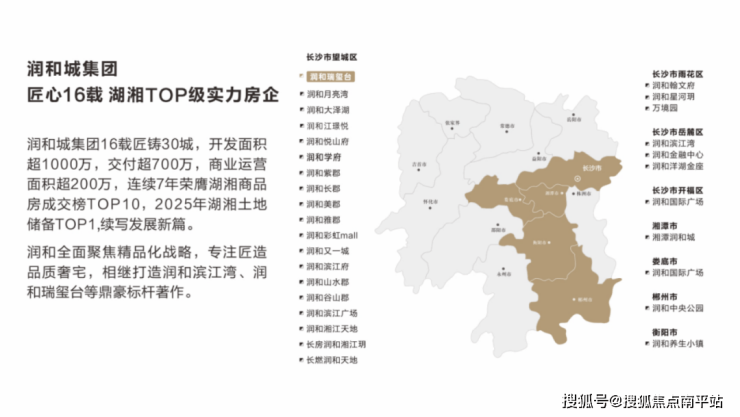 升维精品化 土储TOP1:累计开发超1000万方,100%准时交付,凭借安全稳健的财务状况,迭代升级4.0产品,2025年,润和城集团土地储备位列长沙首位。
