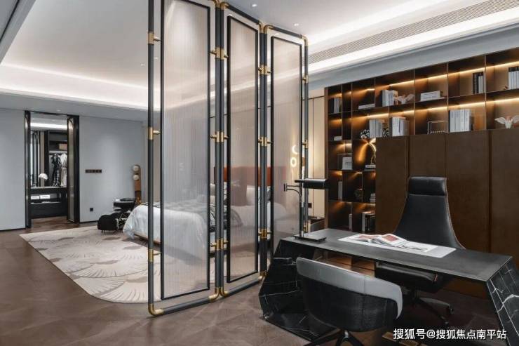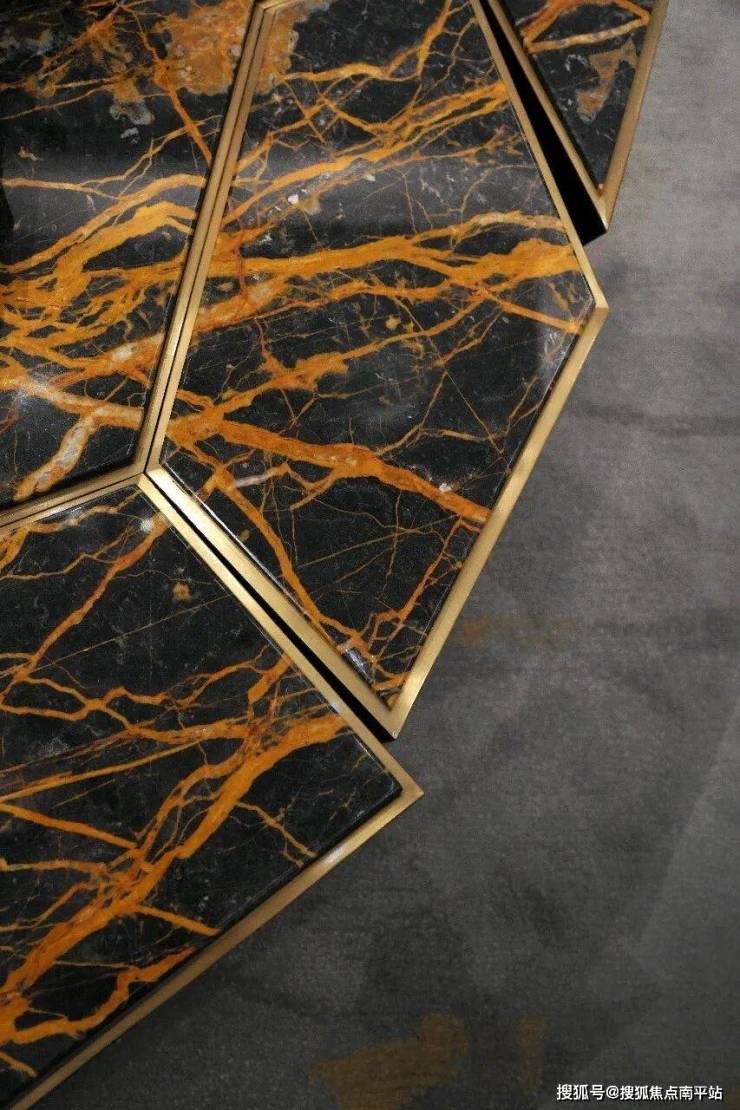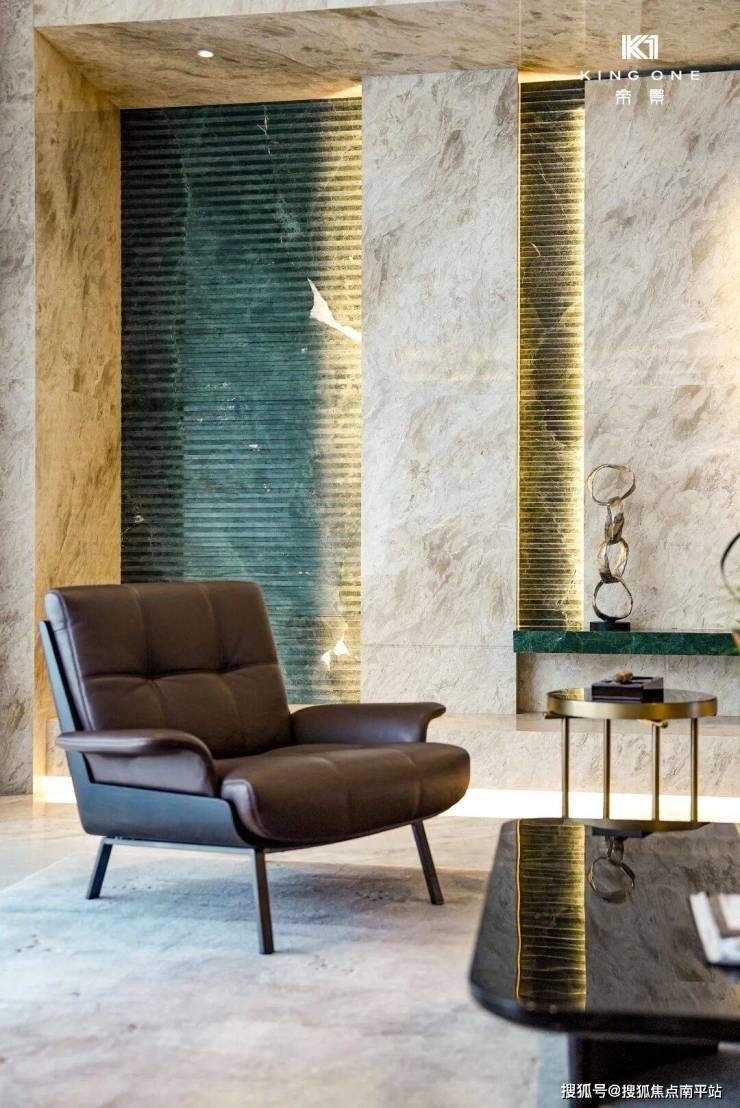 - 2号楼大堂:由香港设计师梁锦华设计,墙面天然大理石+金属边框,休闲区摆放意大利米兰品牌家具