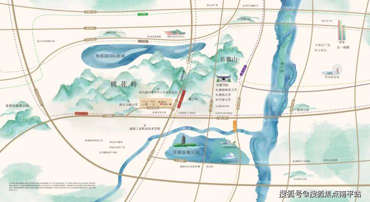直线3km范围内有58个幼儿园;8个小学,如博才中海小学、博才白鹤小学(东校区)、博才白鹤小学(西校区)、长沙市岳麓区五星小学、岳麓区联丰小学等;5个中学:长郡双语洋湖实验中学、湖南大学附属中学、湖南师大附中博才学士中学、中南大学北校区附属实验中学、湖南大学附属中小学新校区。