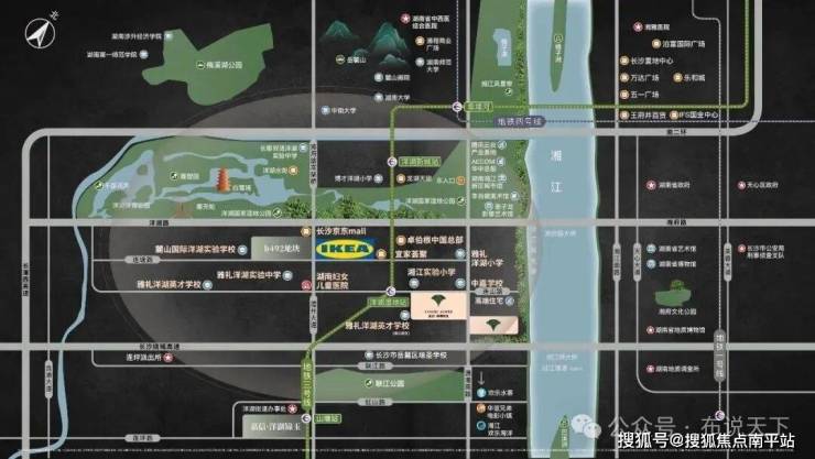 遍地名校:紧邻中加学校,周边有岳麓区实验湘江实验小学、雅礼洋湖英才(湘江校区)、雅礼洋湖小学,四大名校在侧,教育无忧。