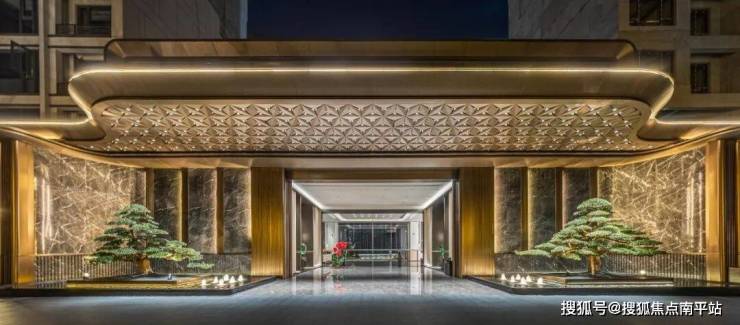 落客区立柱全岩板包裹,搭配冲孔铝板+星空灯,地面瓷砖铺贴,给予业主归家尊崇礼仪。