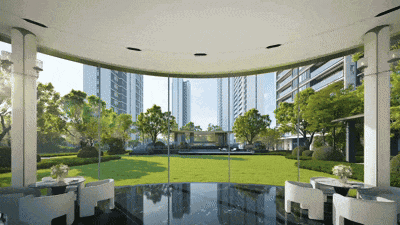 更震撼的是最大约147米楼间距—— 相当于3个足球场宽度! 如此超阔间距带来的无遮挡采光、私密视野,每一扇窗都能最大化地框住流动的四季风景。