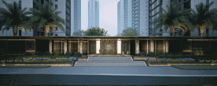 见多了高端楼盘的大门,却少见像绿城・锦凤大观这样,把“气派” 与 “心意” 揉得恰到好处的门仪。先看尺度就足够惊艳:约66米宽、约6米高的巨幅门仪,搭配超大开阔前场,如同星级酒店大堂般的礼仪空间,站在入口就能感受到扑面而来的舒展感,哪怕是开车经过,也能一眼被这份大气吸引。