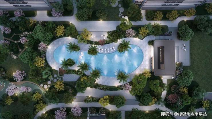 ·约400㎡天幕泳池:池畔躺椅+ 婆娑树影,把滨海城市度假感搬进社区,涵江少数盘仅配备简易泳池,如此规模的天幕泳池堪称顶豪标配;