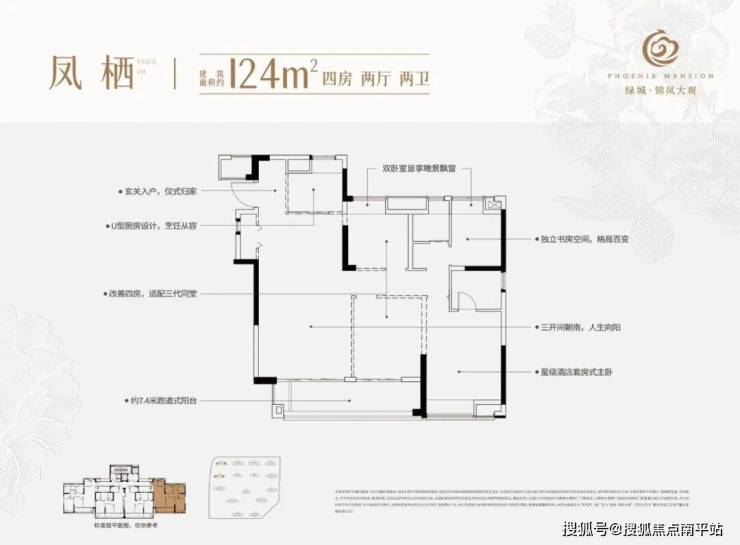 ·建筑面积约124-138㎡改善四房:南北通透+ 超大南向面宽设计+四房布局,适配二胎家庭、三代同堂,实现置业一步到位;