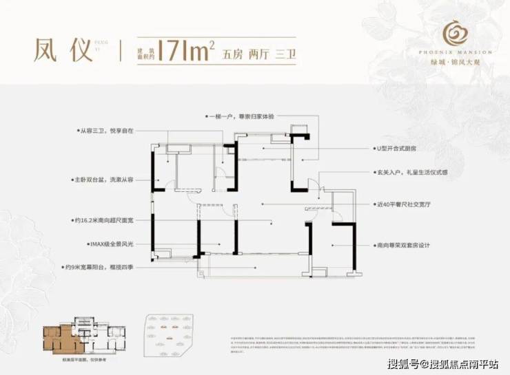 ·建筑面积约171㎡终极五房置业:一梯一户享尊崇归家,约16.2米南向大面宽+约9米景观阳台,南向双套卧+从容三卫,舒适度媲美别墅,填补涵江核心区大平层空白。