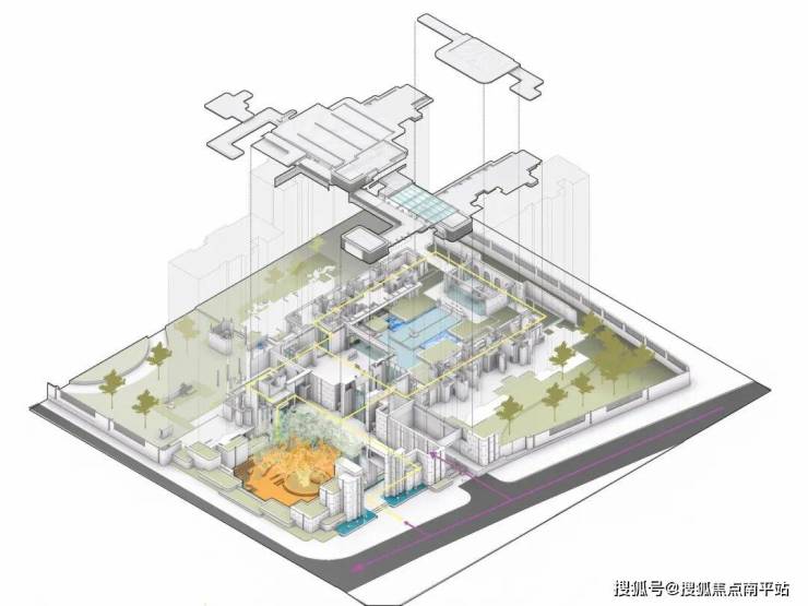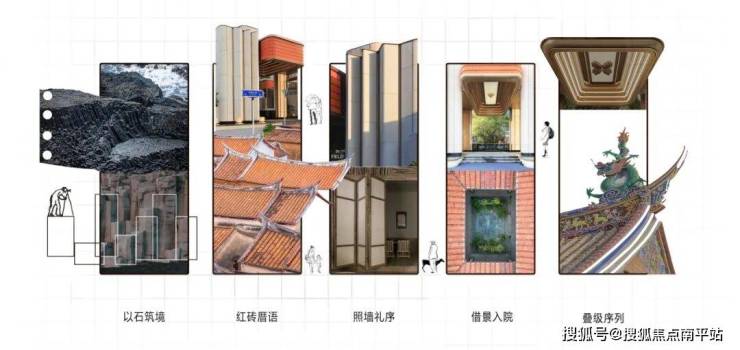 设计以榕荫、红砖与礁石肌理的标志性符号为起点,延展出两进开放院落界面。