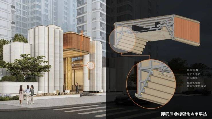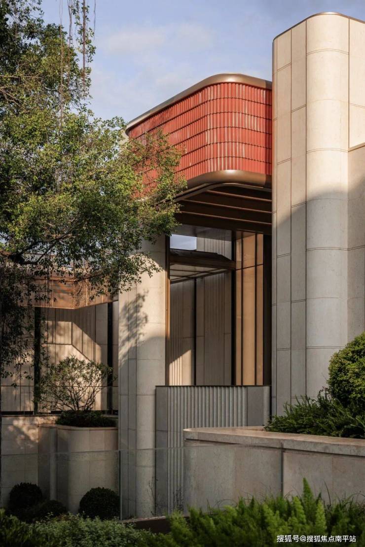 本项目精心选用了体现在地性的石材,辅以不锈钢及铝板做细节线条设计。在主材构造、尺寸把控、去胶化、密拼工艺、弧形造型的落地,严抠交接,坚持材料的完整性等维度都给与高度关注。