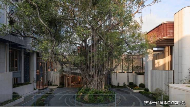 社区主门运用“框景”的手法,精心截取百年榕树的自然姿态,不仅延续了传统院落“以景引境”的智慧,也让归家成为一场视觉的铺垫——人还未走进院子,心已悄然入境。