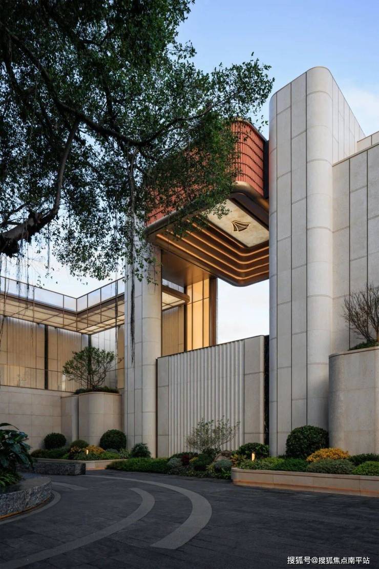 高耸入口两侧如屏风般徐徐展开,既是对传统礼序的回应,也通过体块的转折形成含蓄而有层次的界面,悄然引导视线的延伸。