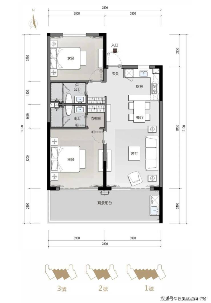 梯户比:1#楼2梯5户,2#-3#楼2梯4户