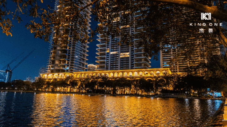 傍晚时分,建筑内部的灯光渐次亮起,倒映在水面上,那种建筑与自然、光影与水的对话,会让你不由自主地放慢脚步,徜徉在绿荫之间。