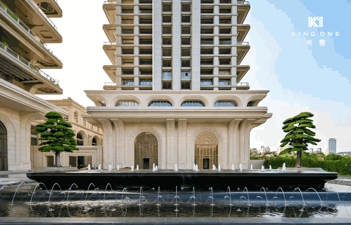 地面铺设的 意大利卡拉卡塔白大理石 ,纹理如凝固的时光;墙面选用的 巴西鱼肚白 ,温润中透着清冷的光泽;而最引人注目的,是那16根造型优雅的“小蛮腰”石柱。它们每一根皆由整 块希腊宝格丽白原石 悉心雕琢。外立面所采用的 意大利罗马洞石 ,则严格限定来自同一矿脉,以确保色泽与肌理在岁月流转中依然连贯如初。