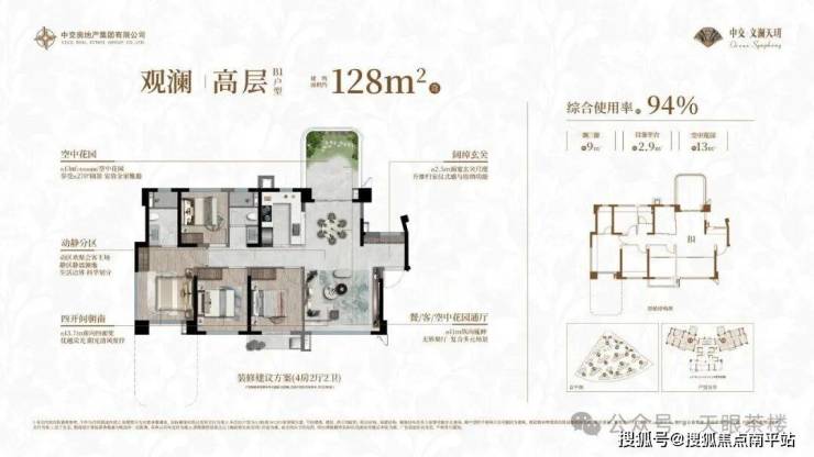 约128㎡4房2卫四代宅,综合使用率最高约95%,相当于传统建面约150㎡的空间感。 南北通透,四开间3卧室朝南,南向面宽长达约13.7米;入户玄关约2.5米,归家仪式感和收纳空间都得到升级;南向都带晾晒阳台,奇数层为约11米长的餐客空中花园大通厅布局,偶数层带约15㎡270°瞰景的空中花园的同时,餐客厅还能南北全落地窗瞰景...