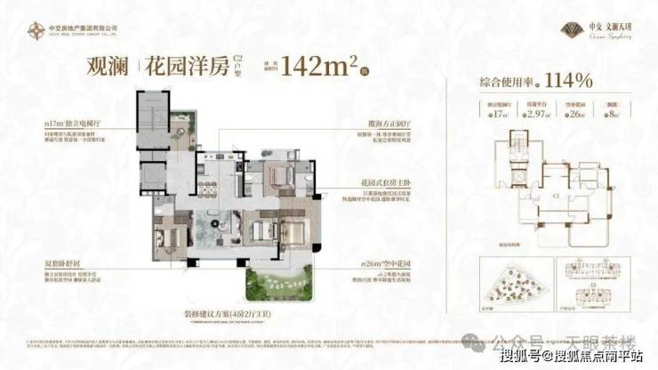 约138㎡4房3卫洋房四代宅,综合使用率最高约114%,相当于传统建面约200㎡的空间感,开创了厦门同级面积段双套卧时代。 约17㎡270°独立入户光厅且配备中央空调,棋牌休闲、泡茶、家政等随心定制;南北通透,3卧室朝南,极致采光通透;星级主卧同样270°瞰景设计;北向带晾晒阳台+南向超大空中花园+独立入户光厅等多种外挂场域,共筑院墅级生活品质...