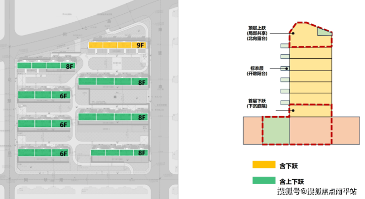 洋房首层均为底跃,首层下跃带产权,墅质洋房,南侧全明下沉庭院。