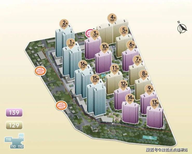 金茂晓棠以约63亩的尺度,在2.5容积率的规划框架下,演绎出一场关于土地价值的精妙叙事。项目整体因地制宜,巧妙化解场地原始高差,楼栋全南向布局,西侧临路界面以T4大高层构筑城市形象界面,以T2小高层形成核心住区,并结合户型定制实现了所有户型的最大面宽。总建面约13.65万方,规划有16栋建筑,包含4栋高层及12栋小高层,共计808户。