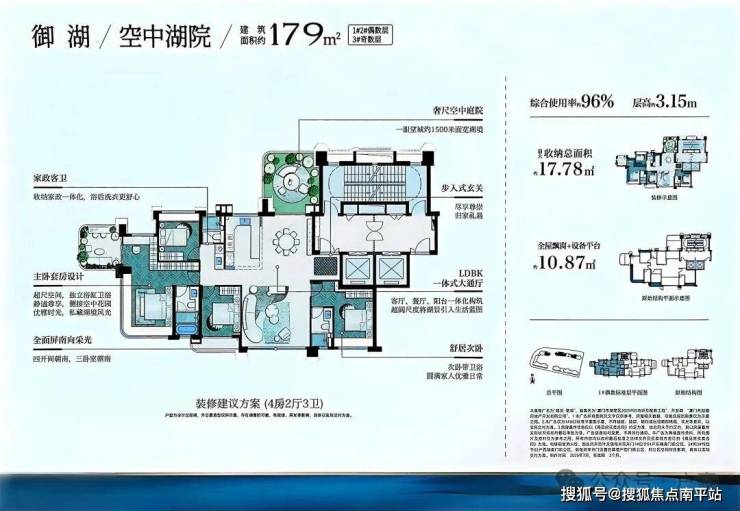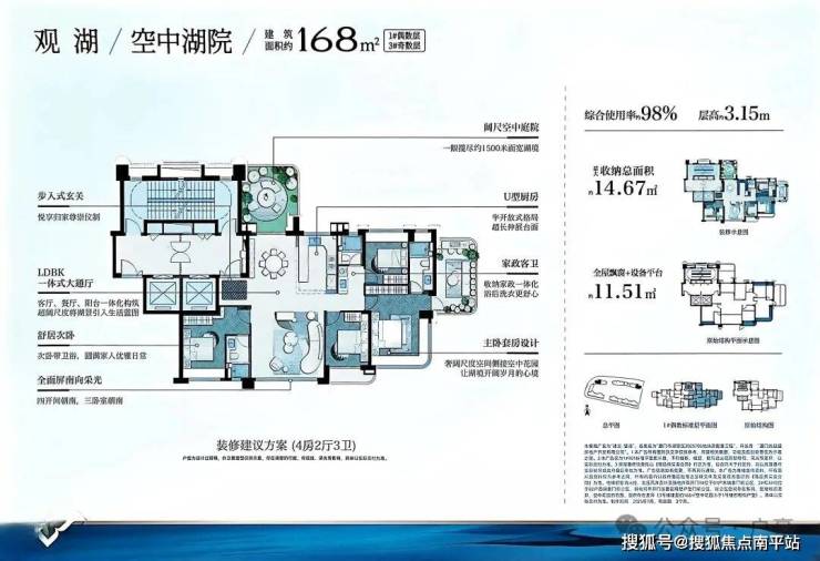 得房率:宣称可达95%以上,户型设计注重观景效果和功能性,得房率较高。