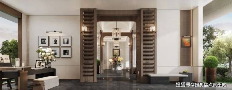 以120米酒店精奢城市封面入口重构归家仪式感,核心楼栋单元入户大堂挑高约4.5米,车库落客光厅采用高端材质工艺。