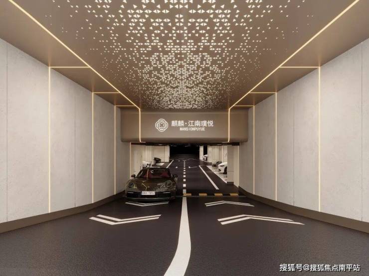 单元大堂与地下光厅均以豪宅标准打造:璀璨星空顶、分色环氧自流平、陶瓷大板砖,搭配香槟金金属饰面与氛围灯带,多重材质与光影交织,让每一次出入,皆具归家的尊崇仪式。