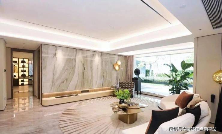 二进 “南洋海派”高奢酒店归家大堂,往常仅用于豪宅室内装饰的奢石,被大手笔地安在了越秀·万博和臻的公区,在细节中拉满了隐奢的生活格调。