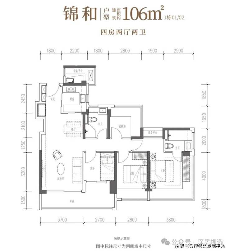•锦和·约106㎡四房两厅两卫: 南向四开间,一线园林景观,自在奢想