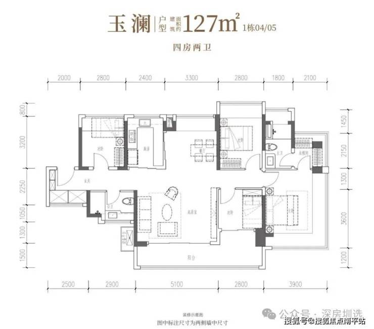 •玉澜·建面约127㎡4房2厅2卫: 南向四开间,南北通透,约14.7米IMAX光幕,独立衣帽间