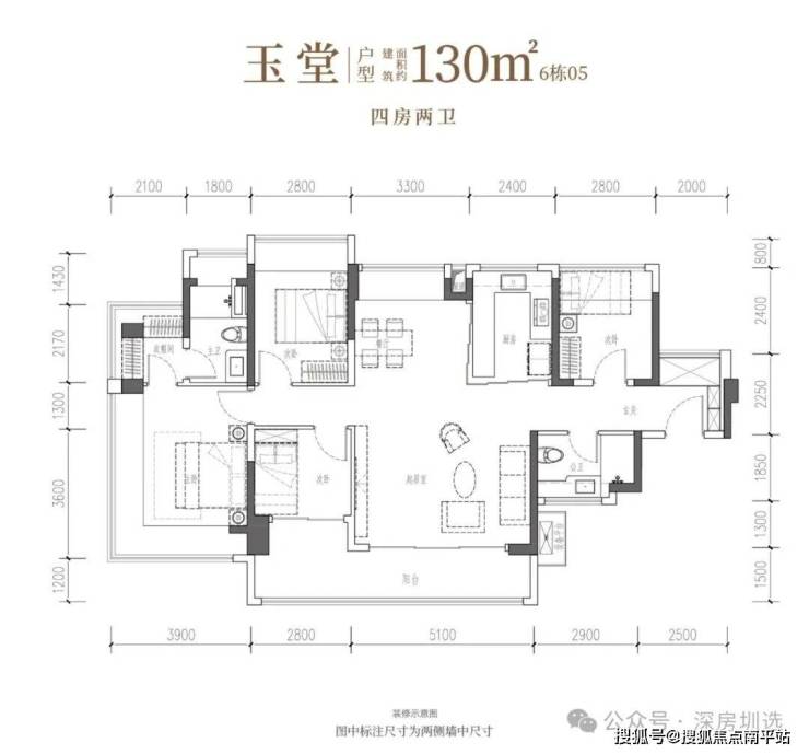 •玉堂·建面约130㎡4房2厅2卫: 南向四开间,约14.7米IMAX光幕,尺度自成
