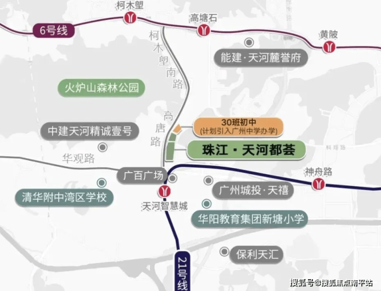 地铁通勤到珠江新城都需要21号线转5号线,适合想要半小时珠城通勤的小伙伴。